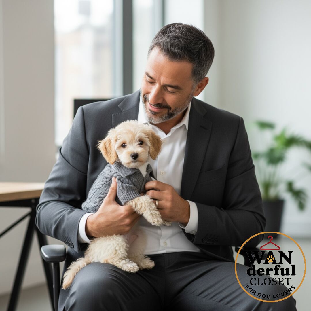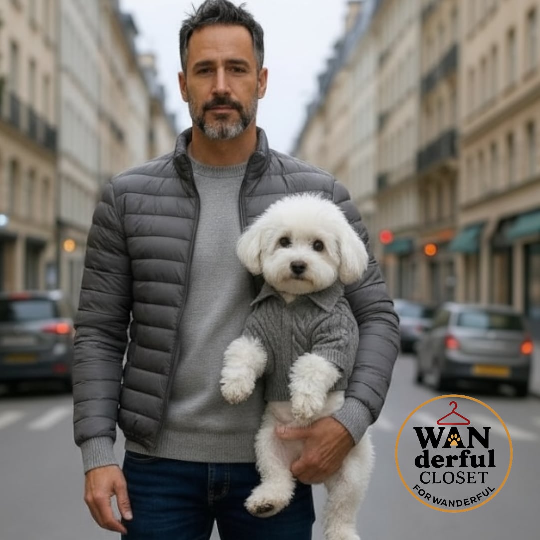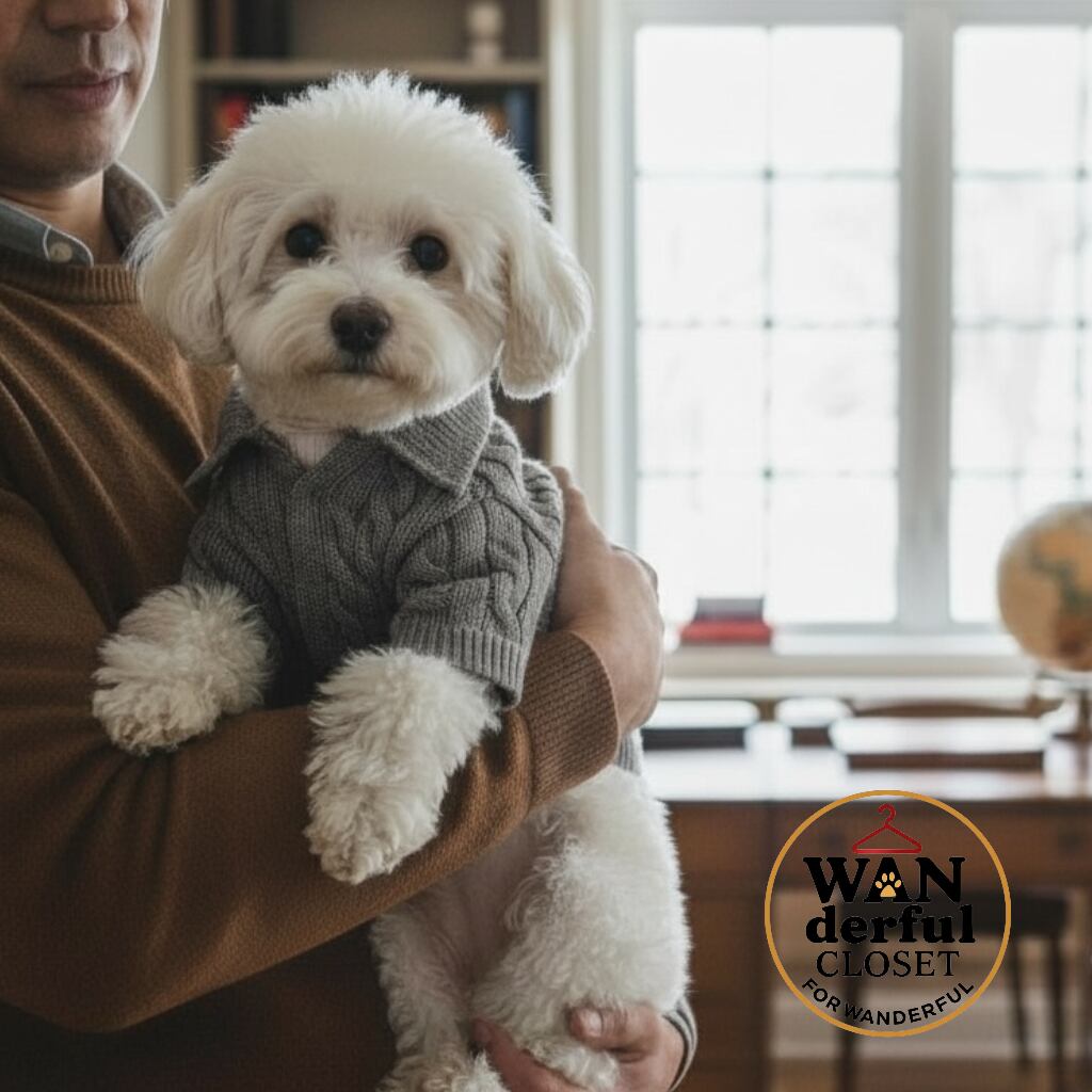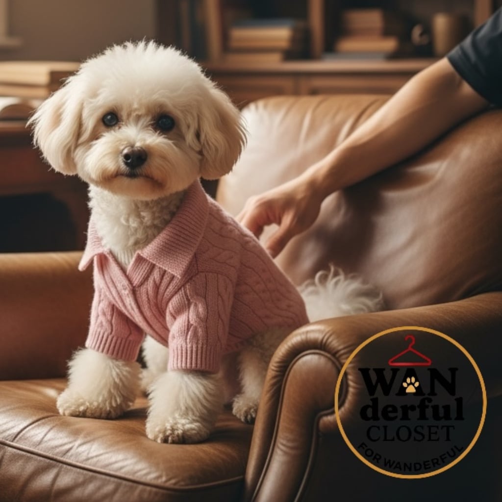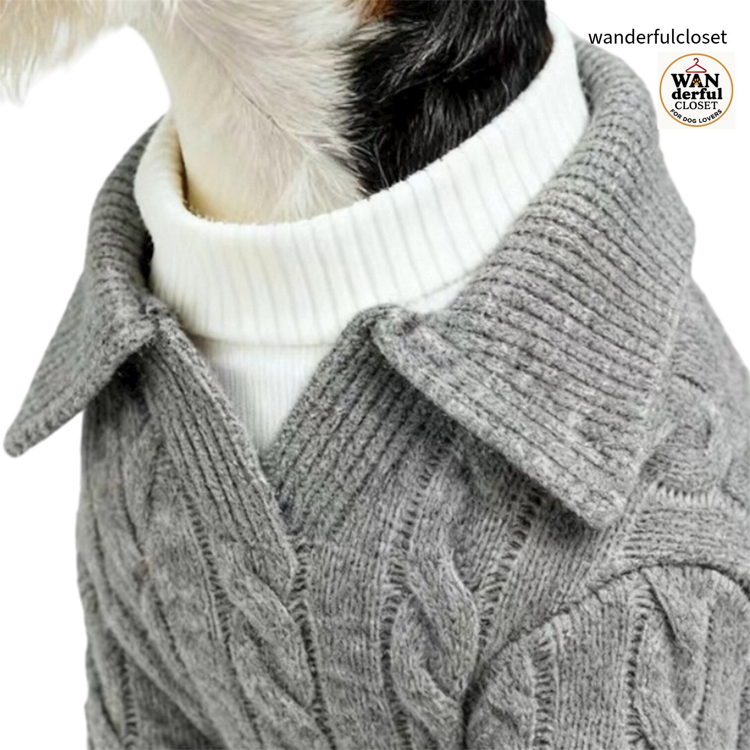 街歩きで映えるケーブルニットは、男の子にも女の子にもぴったりのおしゃれな犬服です。