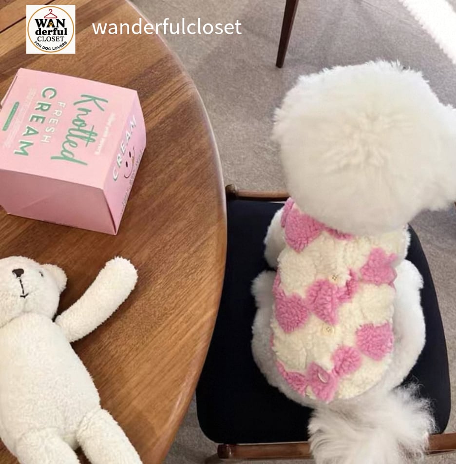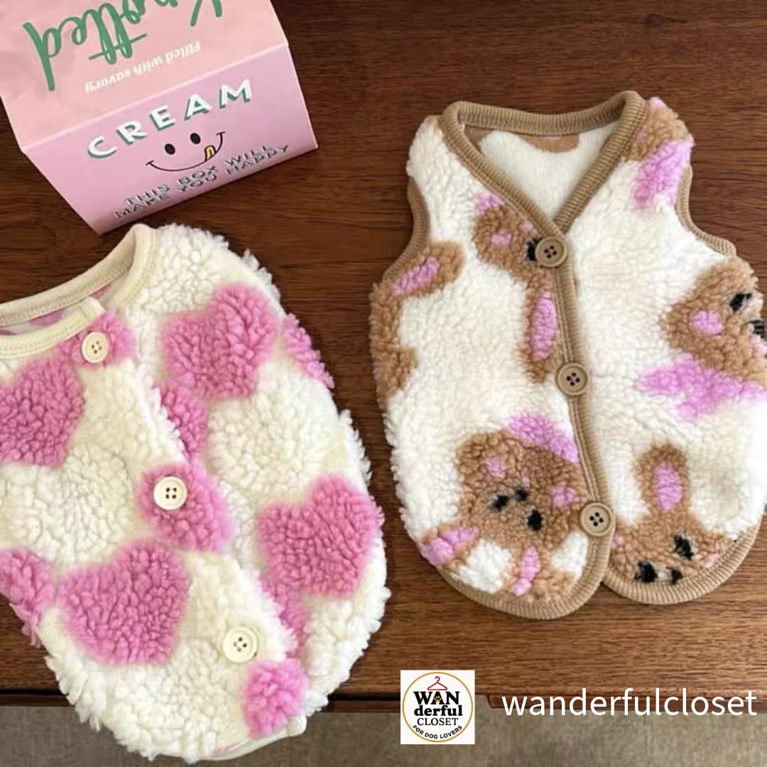 【小型犬・中型犬用|ハートとうさぎ柄が愛らしい柔らかニットベスト】