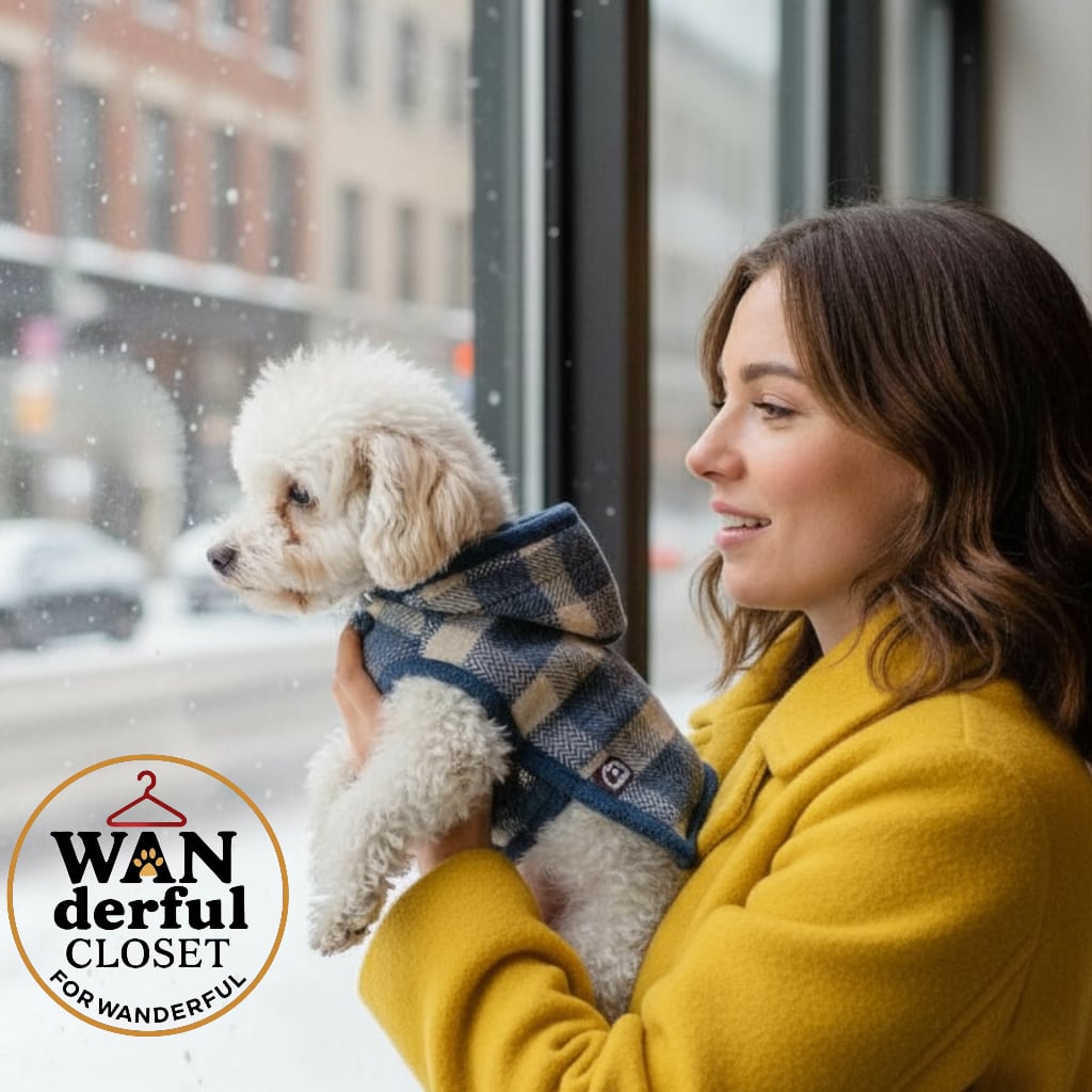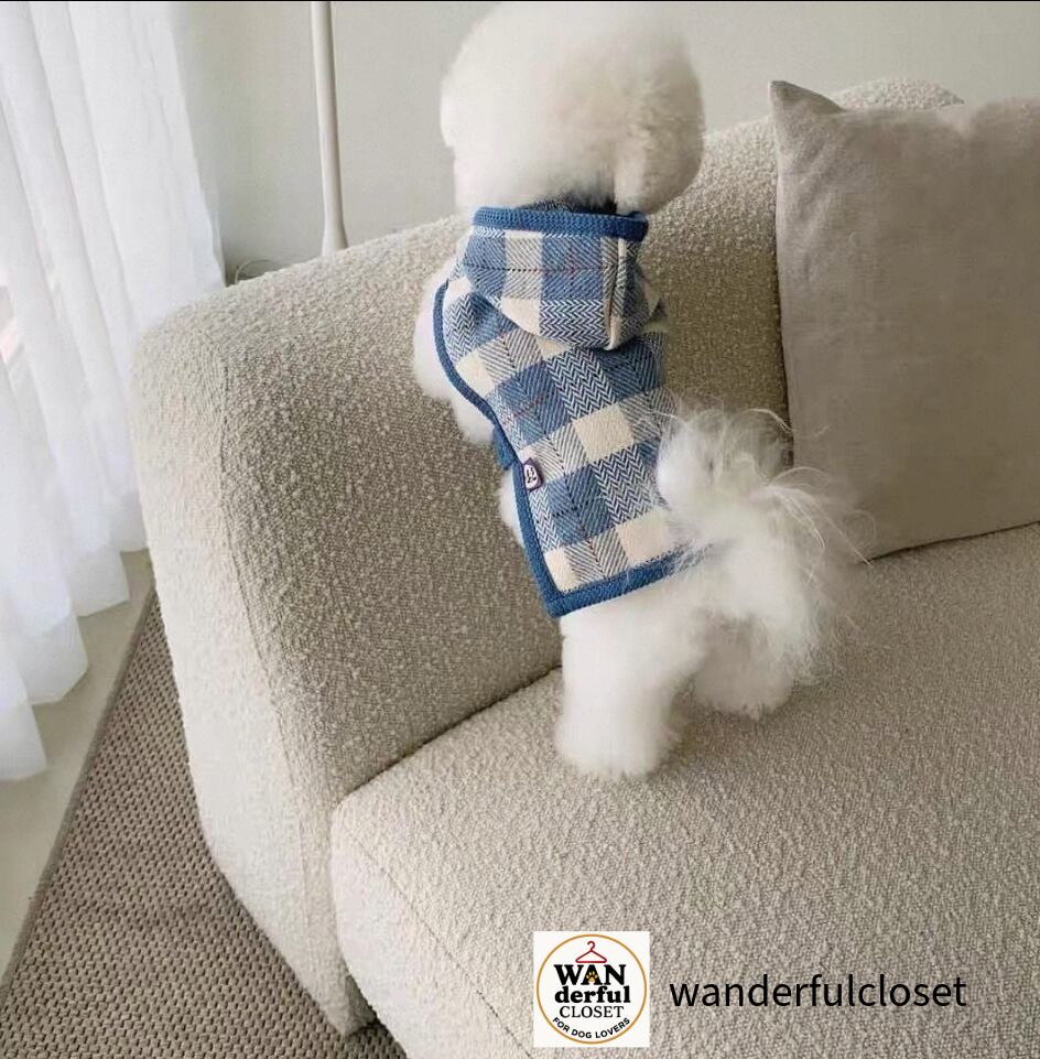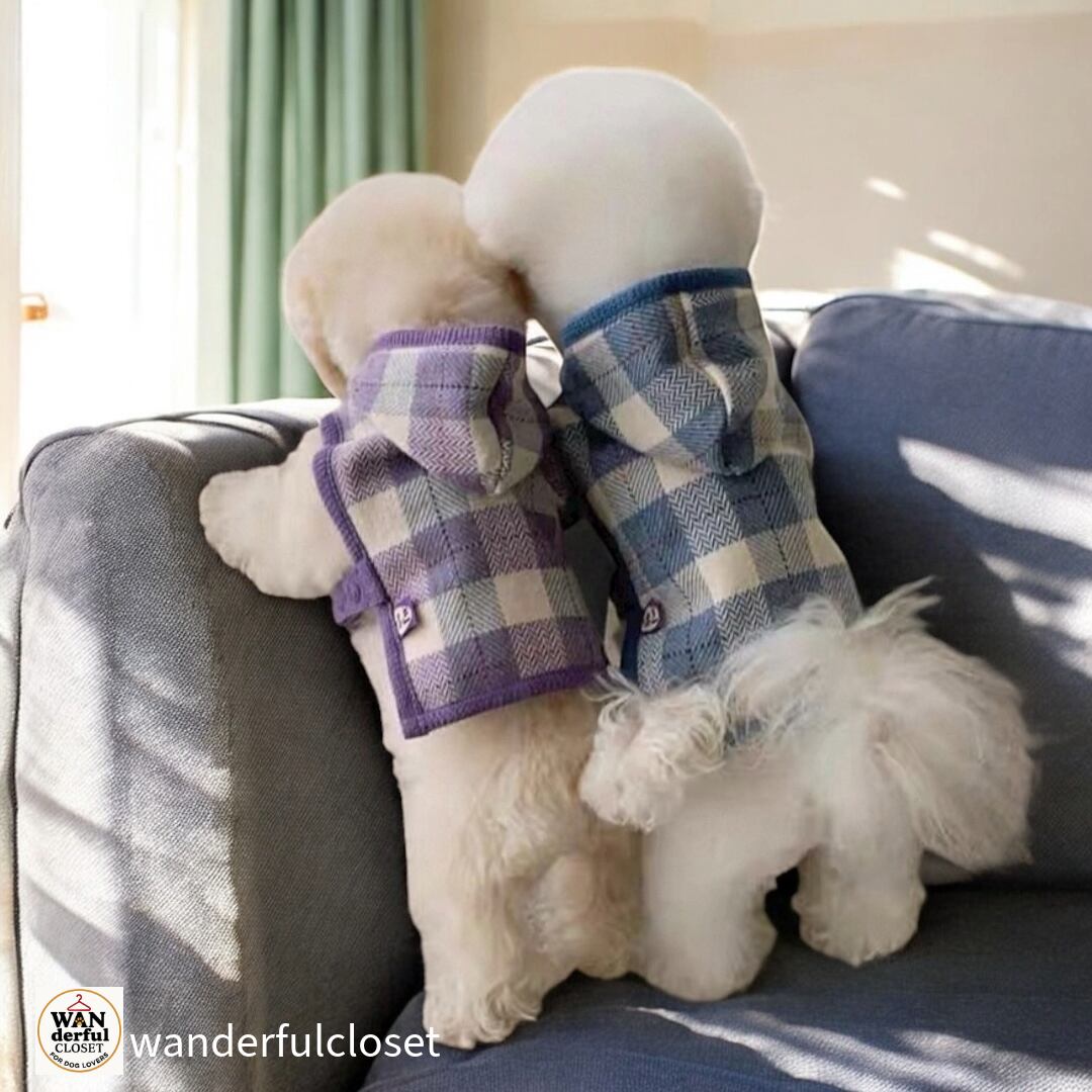 【小型犬・中型犬用|大きめチェック柄が可愛いフード付きベスト】