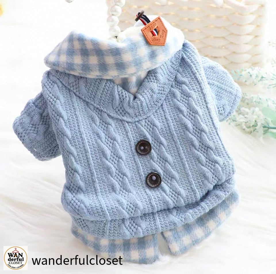 【小型犬・中型犬用|やさしく彩るチェックシャツ×ケーブルセーター】