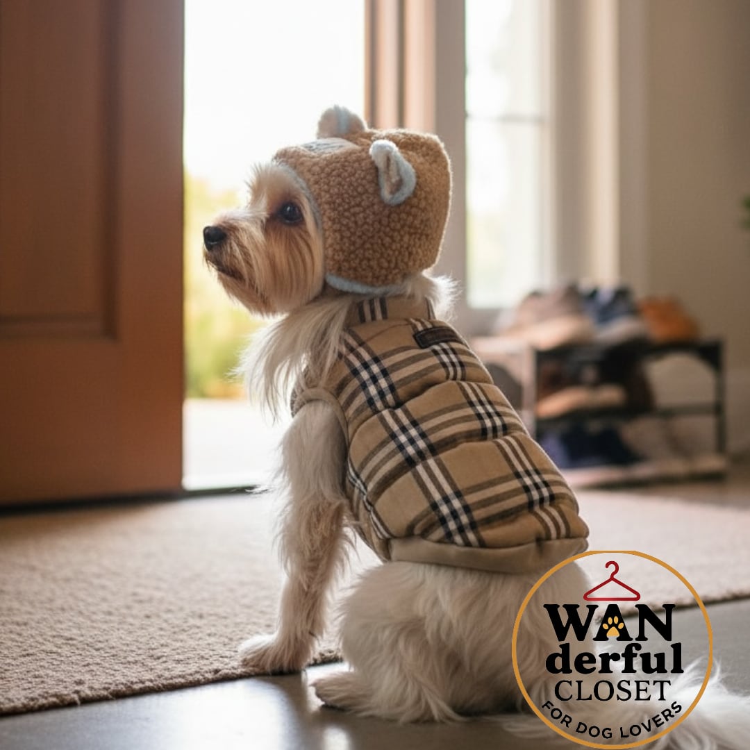 【犬服】ベージュチェック コットンベスト|小型犬・中型犬用 1130