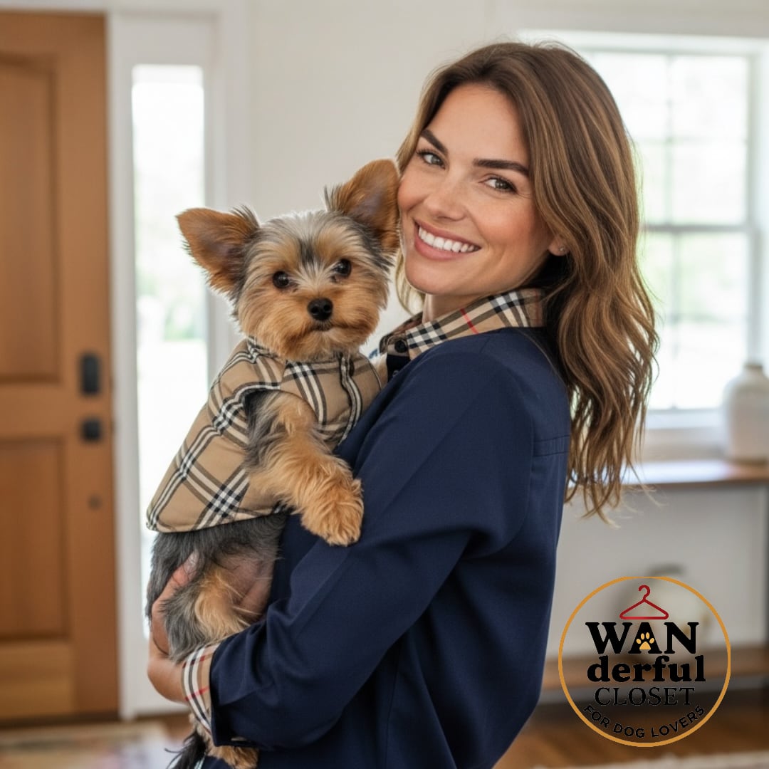 【小型犬・中型犬用|ベージュチェックが上品なコットンベスト】