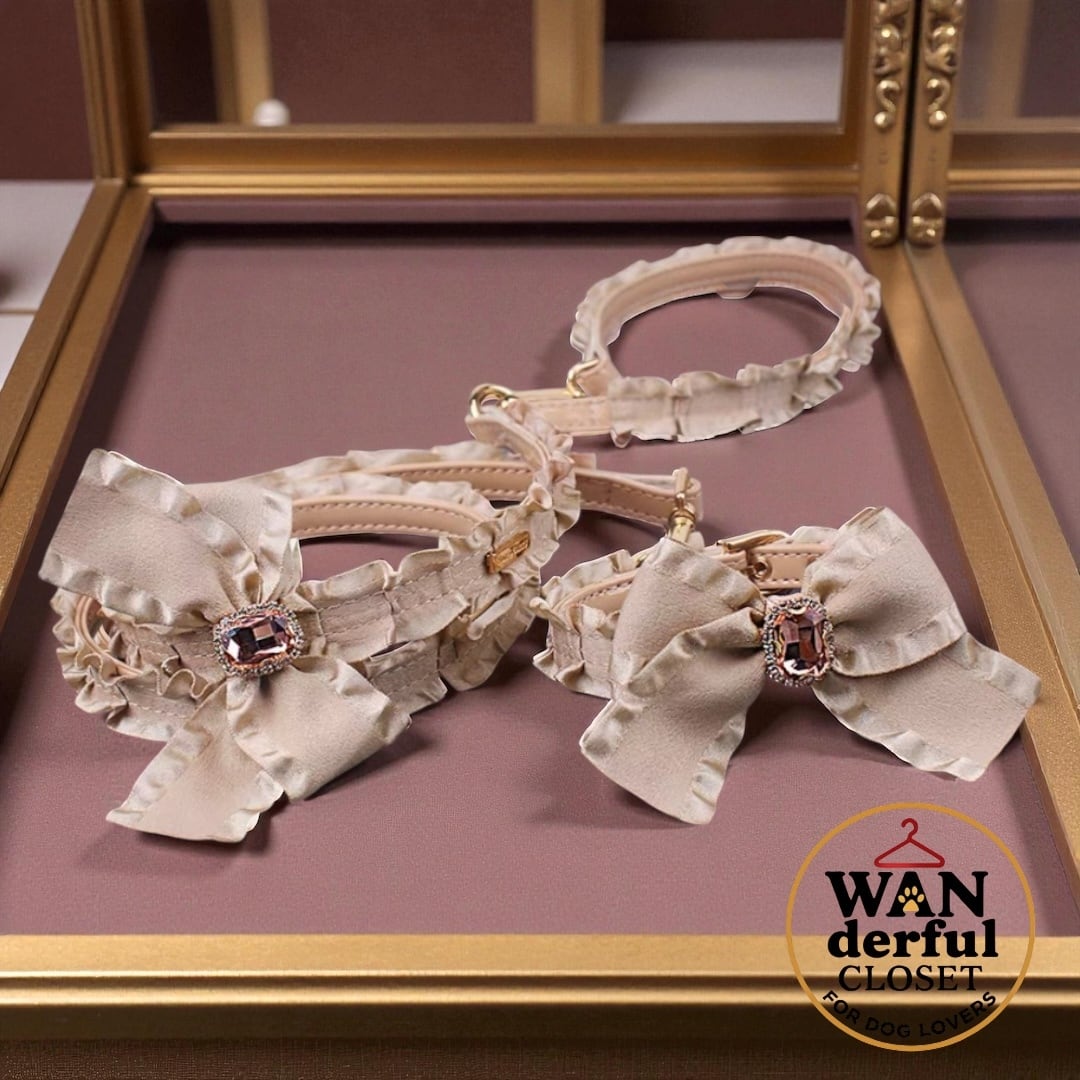 【犬用アクセサリー】レース 首輪セット|小型犬・中型犬用 上品コーデ 1142
