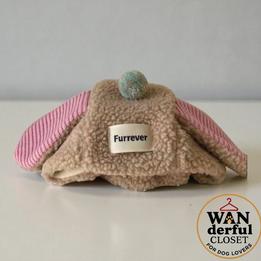 【小型犬・中型犬用|もこもこ可愛いフリース耳ポンポン帽子】