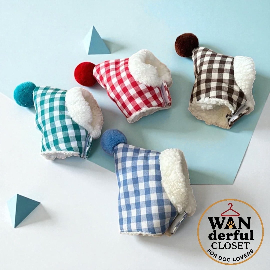 【犬用帽子】チェック柄 ポンポン付き帽子|小型犬・中型犬用 1148