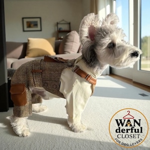 【犬服】ブラウンチェック 上品オーバーオール|小型犬・中型犬用 クラシカル 1155