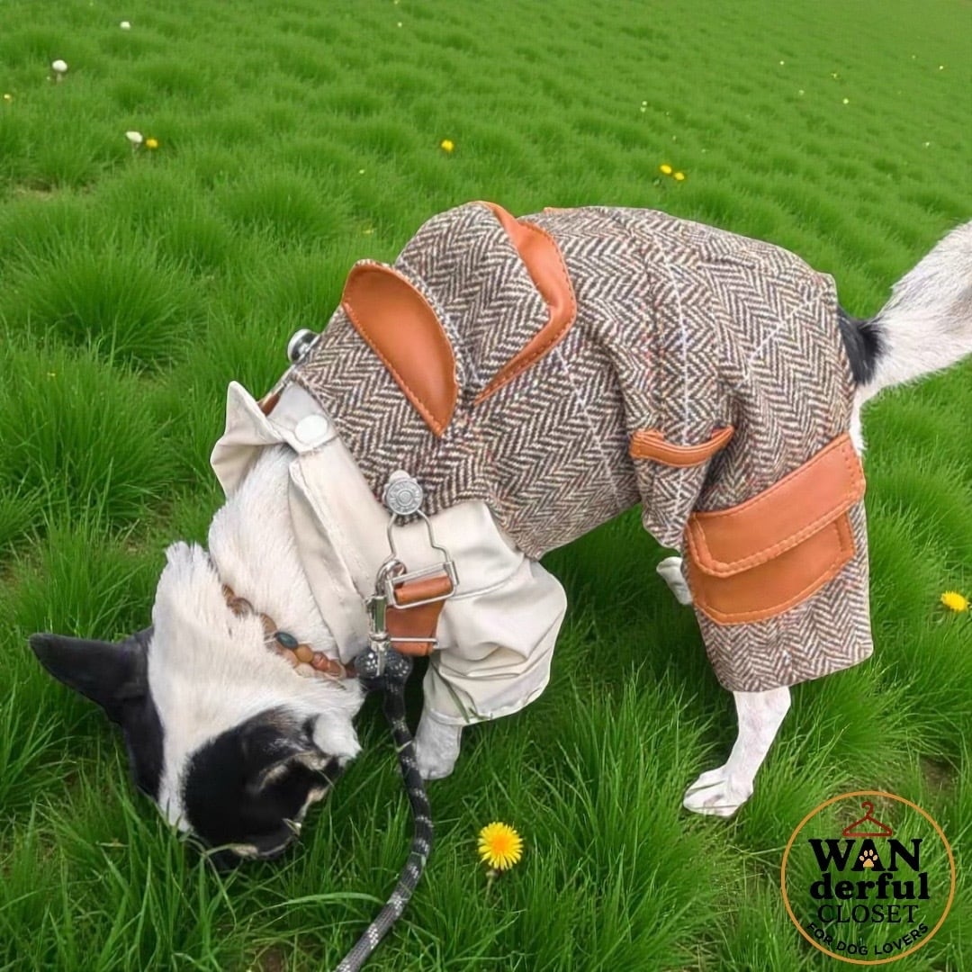 【小型犬・中型犬用|クラシカルなブラウンチェックの上品オーバーオール】