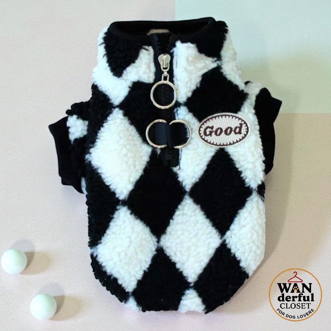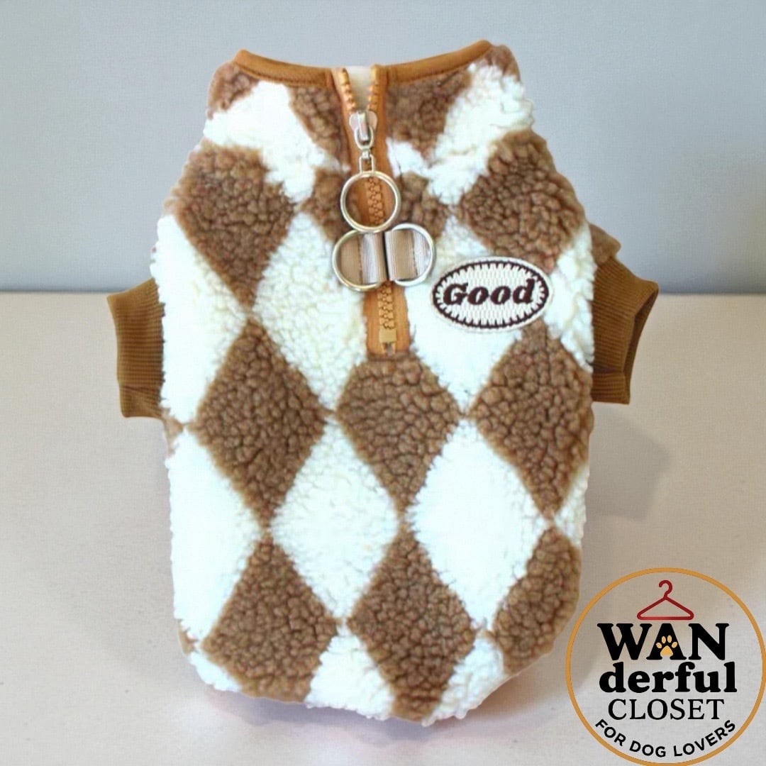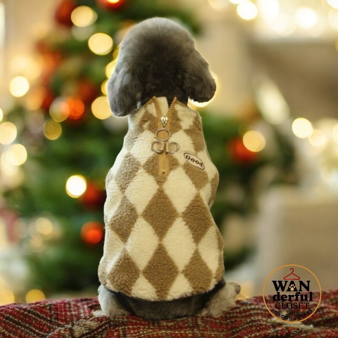 【小型犬・中型犬用|冬に映えるダイヤ柄フリースジャケット】