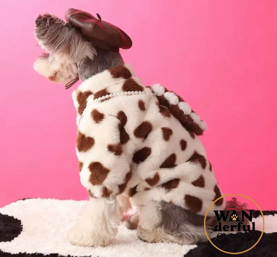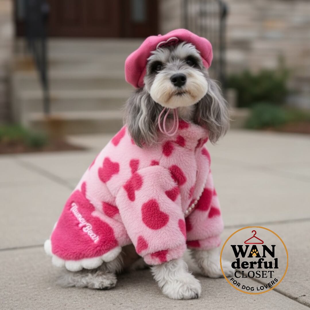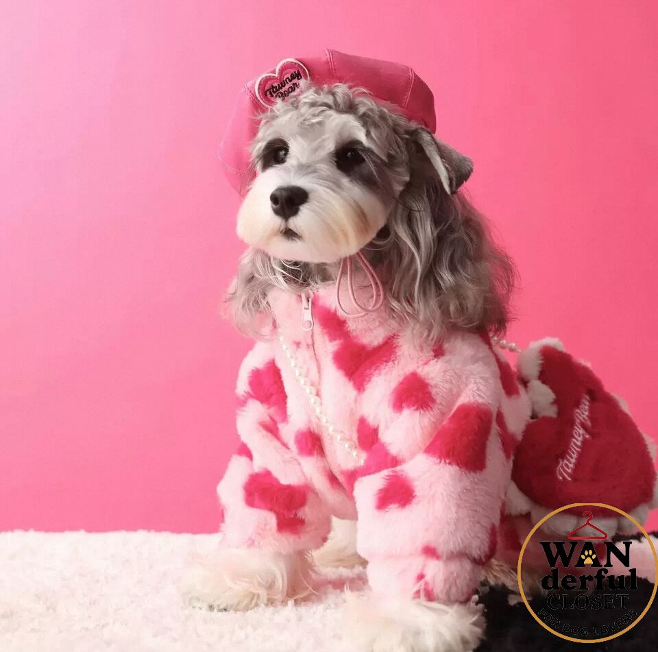 【犬服】ハート柄ボアジャケット ポシェット付き|小型犬・中型犬用 愛らしさ満点 1173