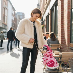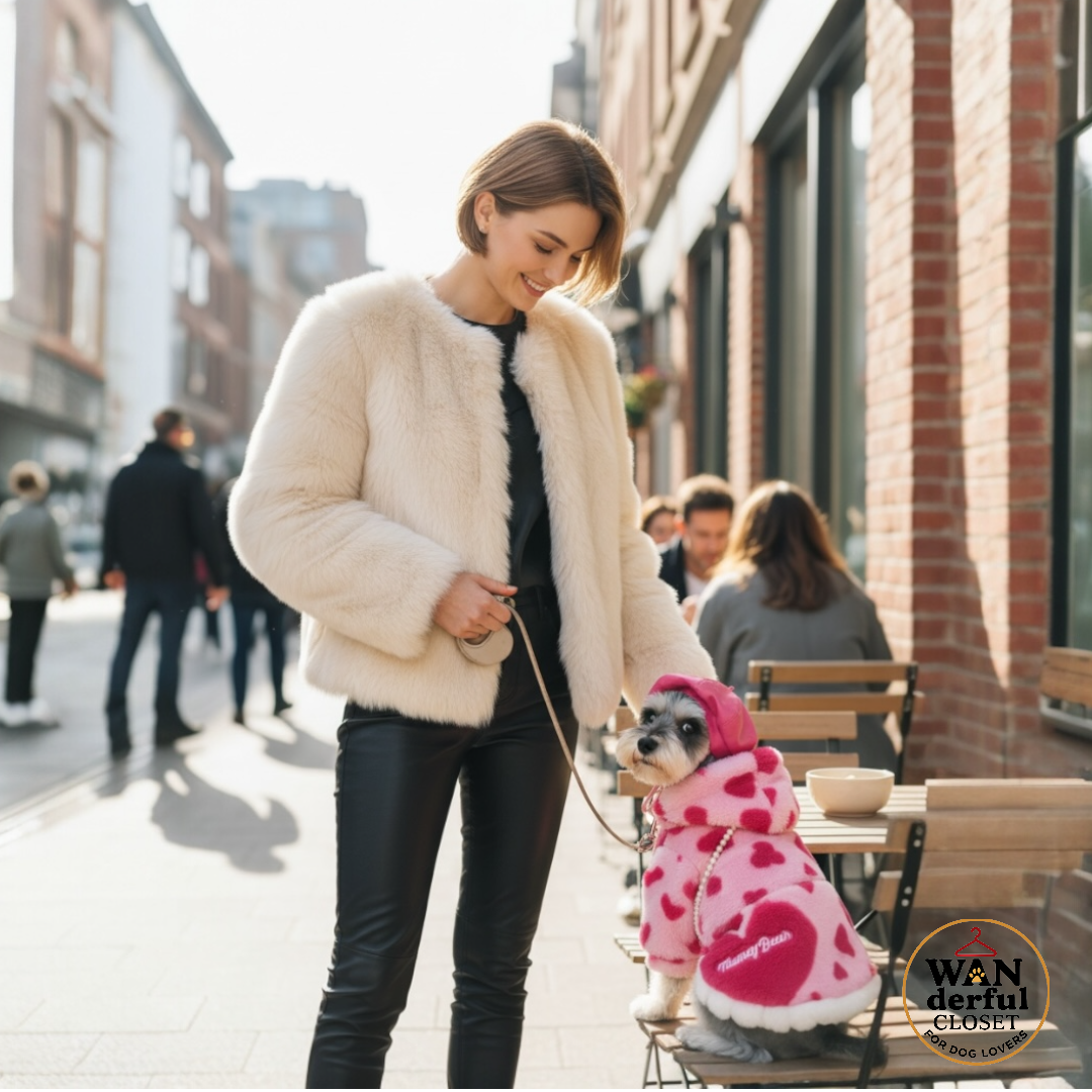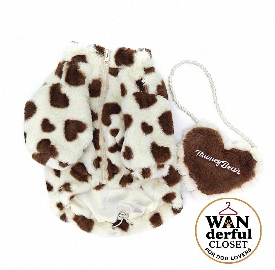【小型犬・中型犬用|愛らしさ満点のハート柄ボアジャケット&ポシェット】