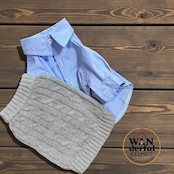 【犬服】ケーブル編みベスト&ブルーシャツセット|小型犬・中型犬用 知的スタイル 1182