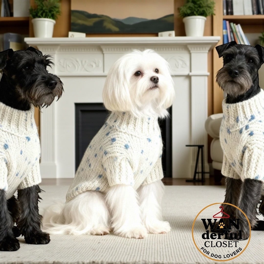 【犬服】ホワイトネップヤーンセーター|小型犬・中型犬用 ナチュラル可愛い 1186
