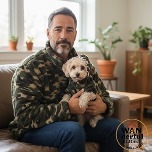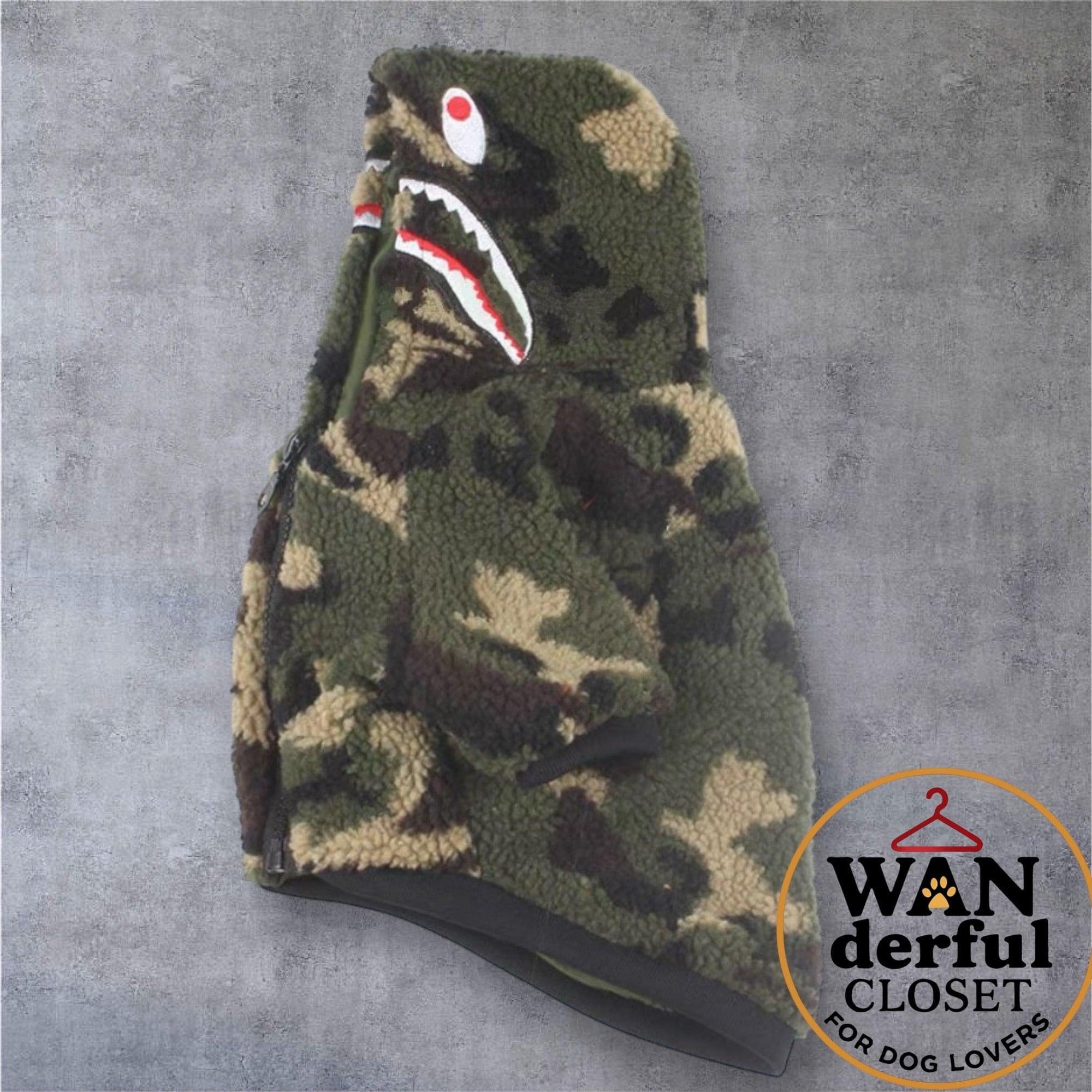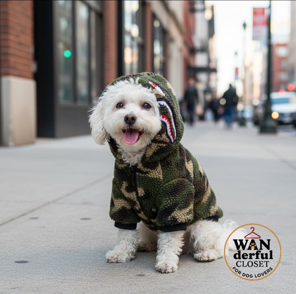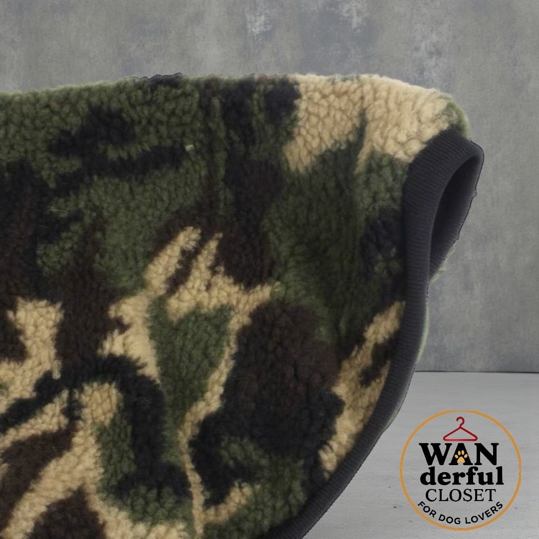 【小型犬・中型犬用|ぬくもりと冒険心をまとうカモフラグリーンフリースパーカー】