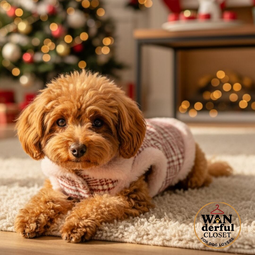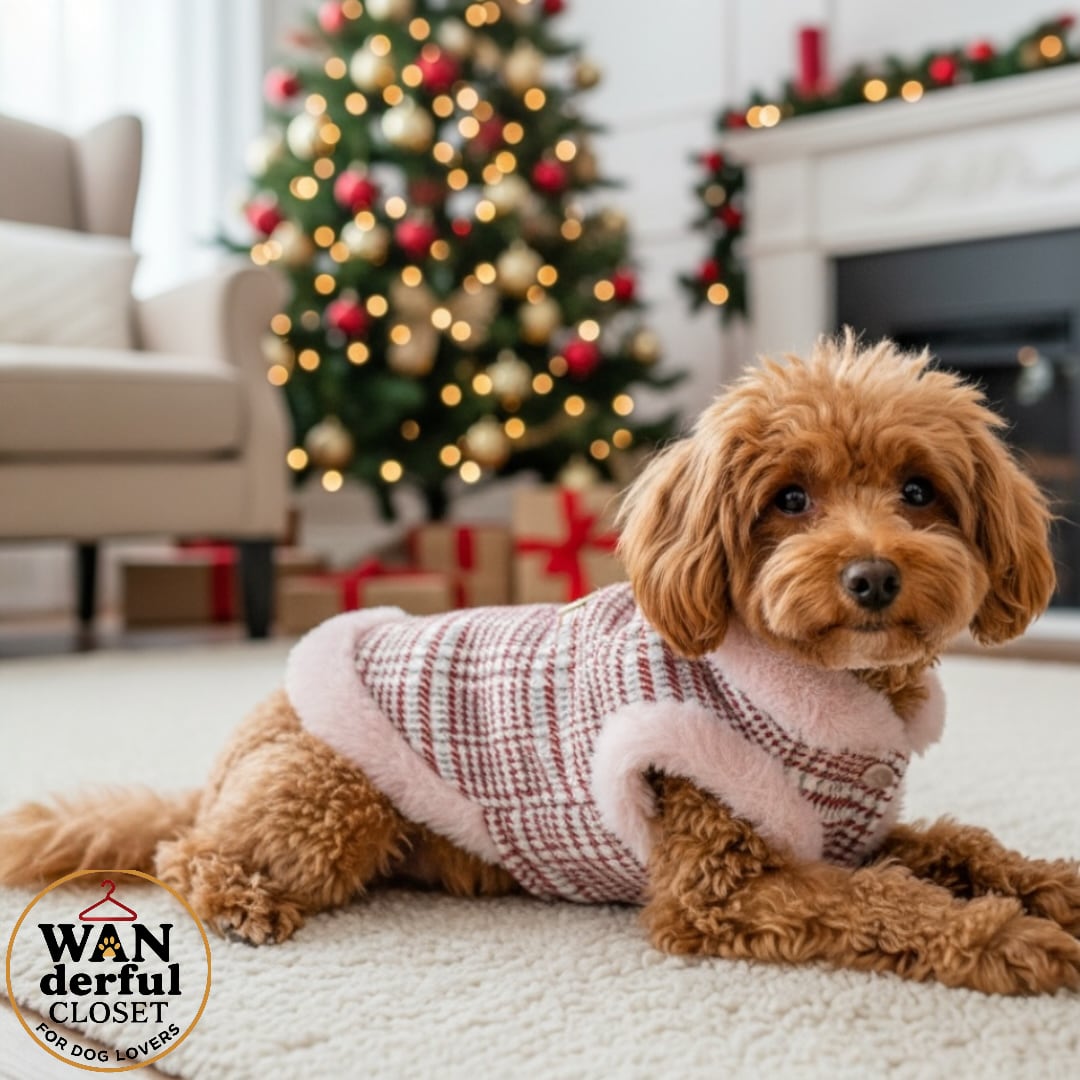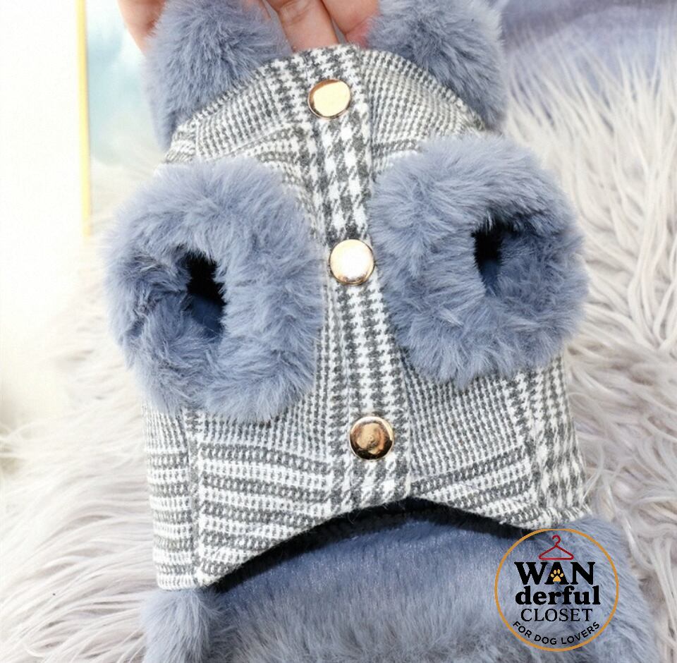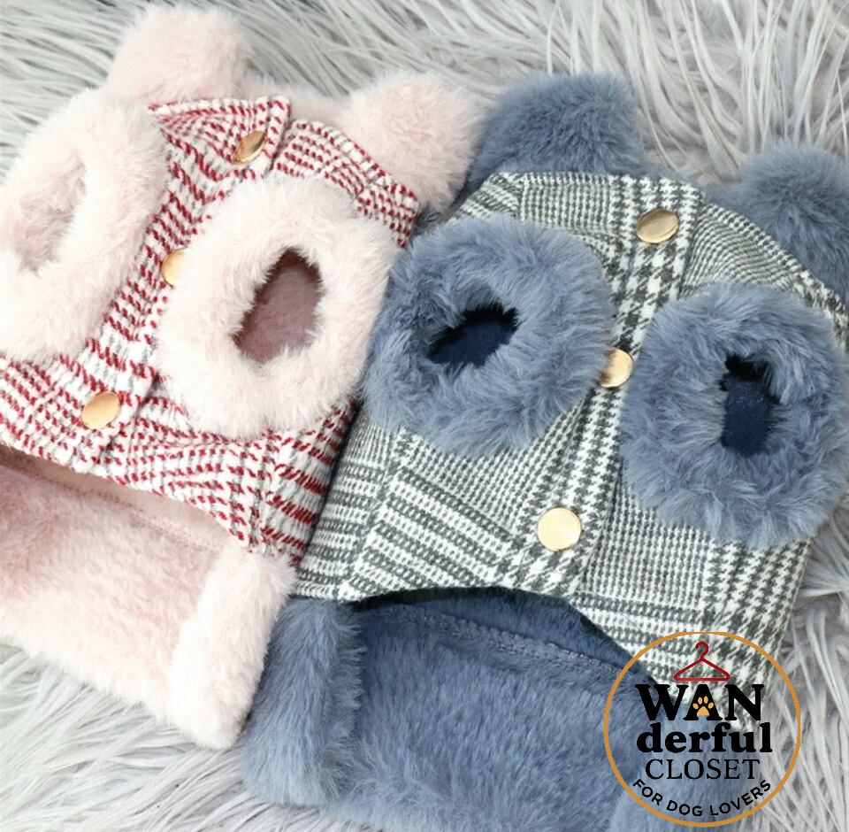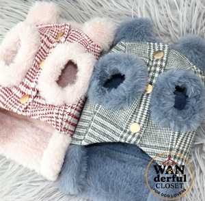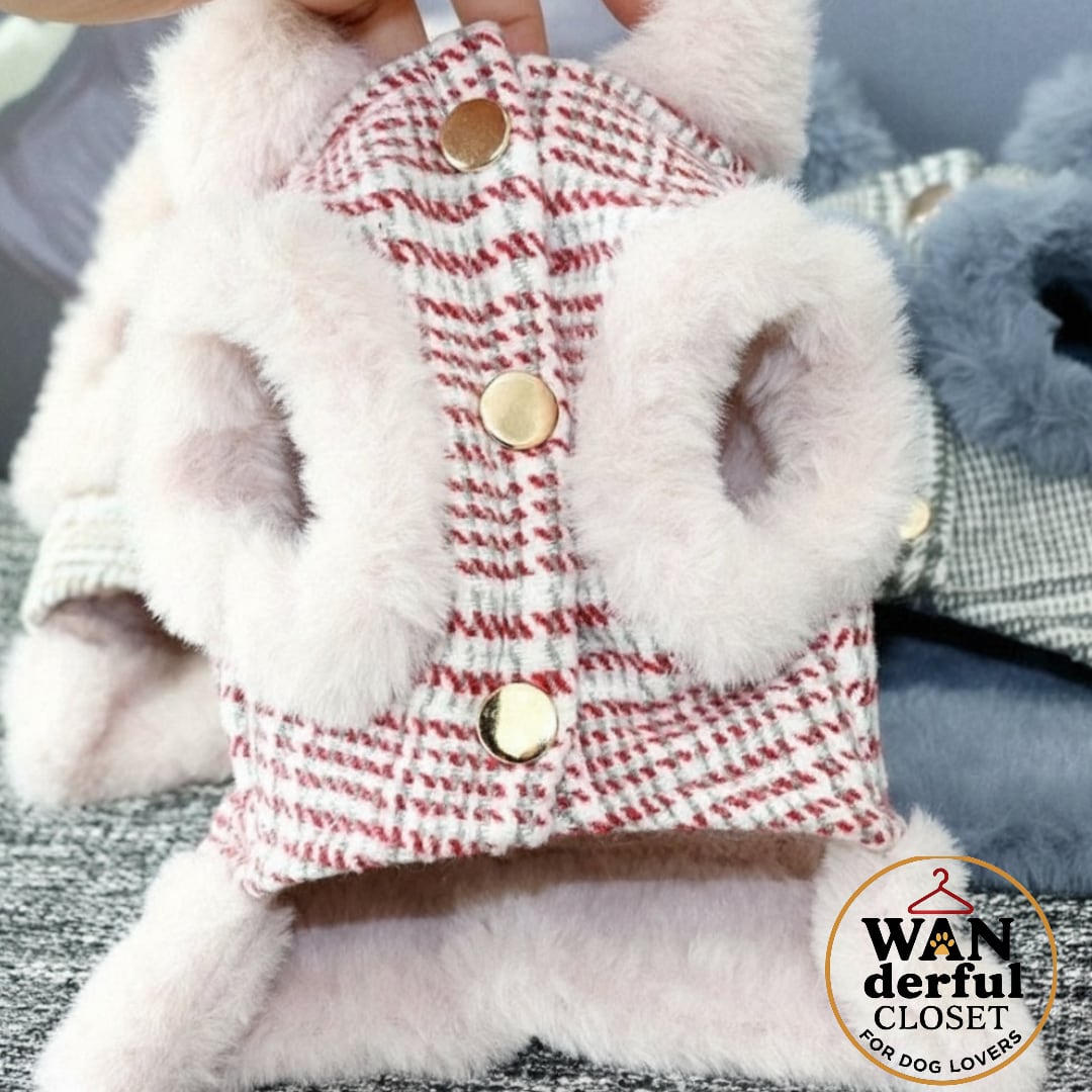 【犬服】ふわもこ チェックボア ジャケット|小型犬・中型犬用 上品あったか 1193