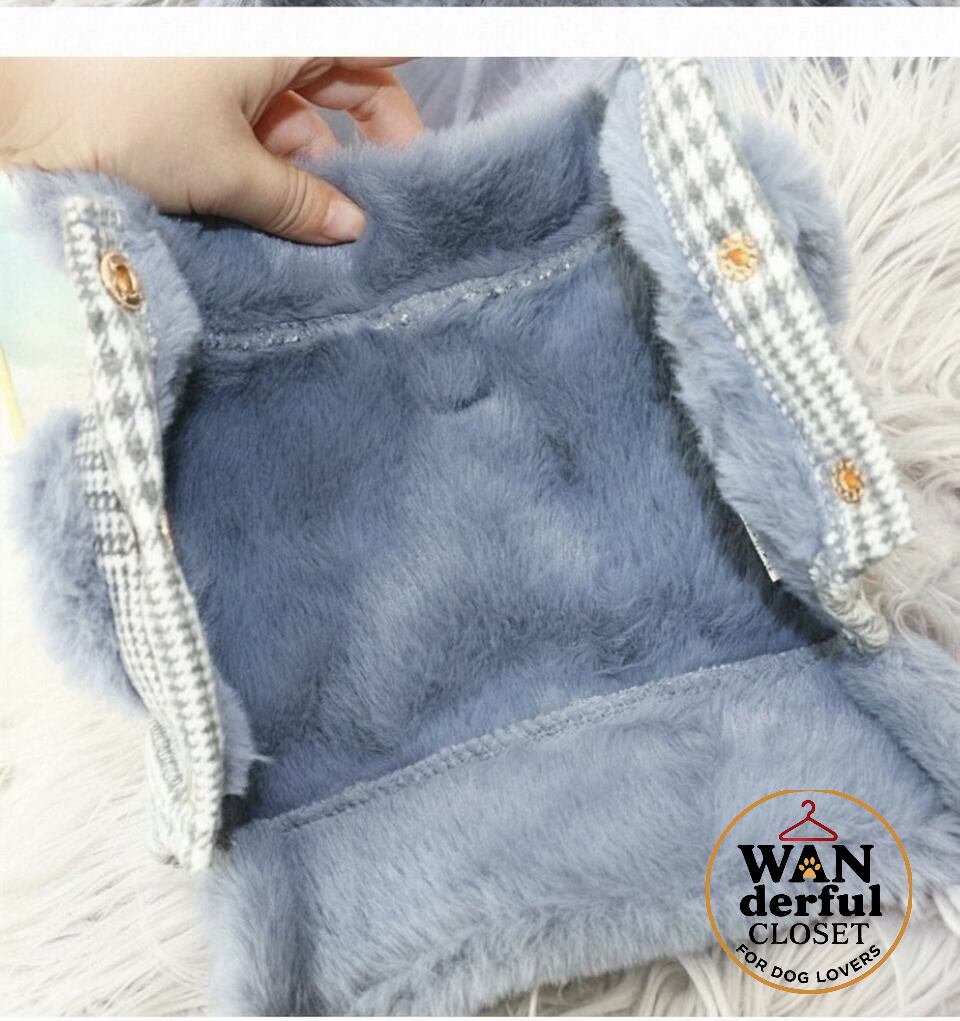 【小型犬・中型犬用|ふわもこチェックが可愛い冬の上質ボアジャケット】